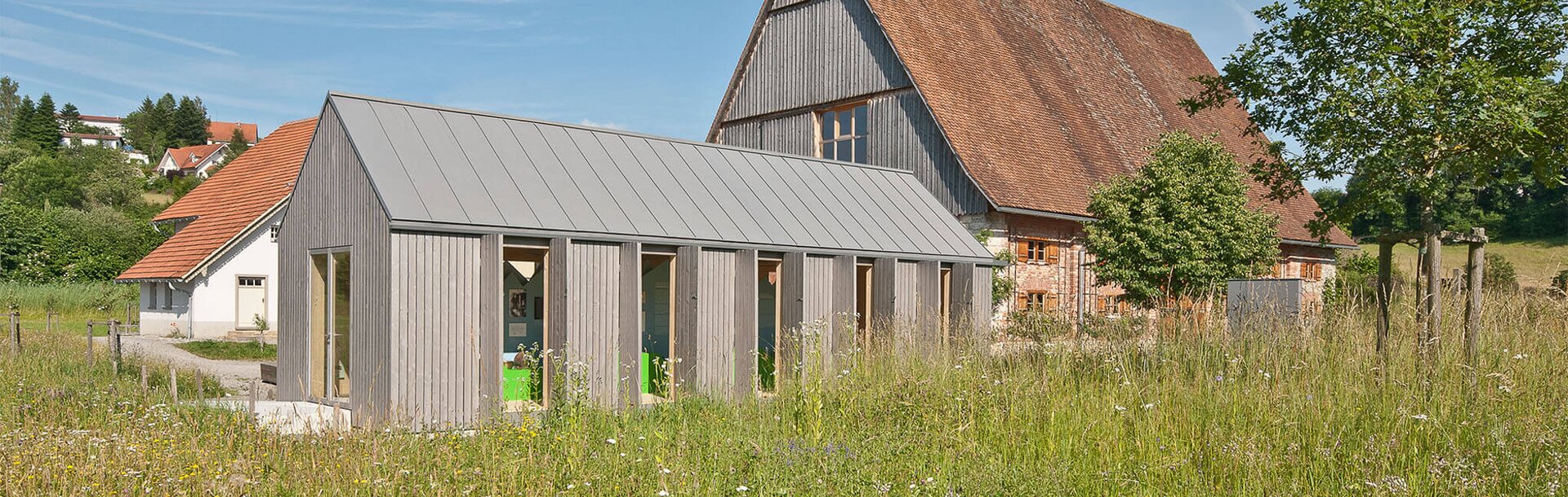 15 casali storici e fabbricati agricoli dell'Alta Svevia e dell'Algovia occidentale .... – monumenti storici di tempi passati. Cosa può essere costruito qui senza collidere con tutto questo? Come andare a integrare un insieme che è già di per sè impressionante? Gli architetti VON M di Stoccarda hanno trovato la risposta a questa difficile domanda: con grande moderazione, sensibilità e un fine accostamento ai motivi esistenti.