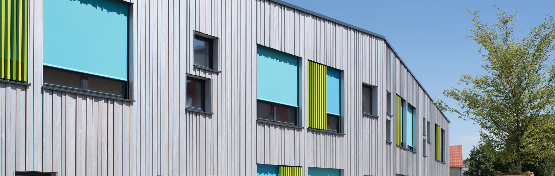 Le finestre sono un elemento di design sorprendente in questo nuovo edificio. Sembrano tagliare la facciata in diversi punti a caso. Questo apre prospettive entusiasmanti per i bambini - secondo il loro punto di vista spesso non convenzionale. All'interno le finestre appaiono calme e armoniose grazie al loro colore naturale dato dal legno. La ditta Arlt Fensterbau ha scelto il prodotto