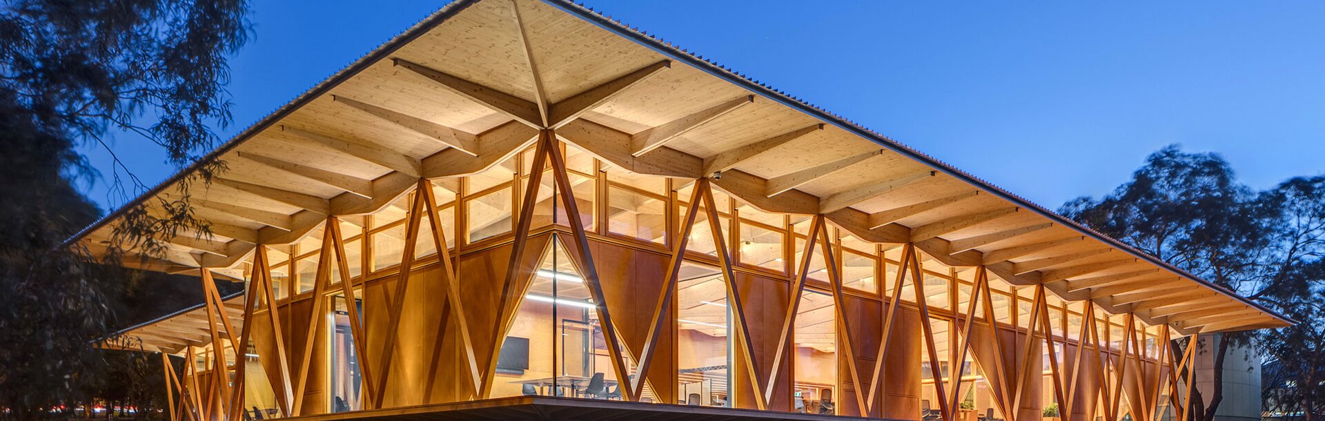 Legno, dentro e fuori: una scelta con molti vantaggi. Clima abitativo, atmosfera, ecosostenibilità, architettura che si fonde con l'ambiente. Utilizzare un materiale vivo significa però anche accettare la sfida di riuscire a mantenere intatta questa caratteristica, a lungo, nel tempo. Il clima estremo dell'Australia ed il forte irraggiamento UV porta ad un rapido ingrigimento dei legni chiari all'esterno e ad un ingiallimento di quelli all'interno. Tuttavia, questo destino non minaccia l'incubatore, perché non è destinato solo a menti brillanti, ma è stato anche costruito da una di loro: