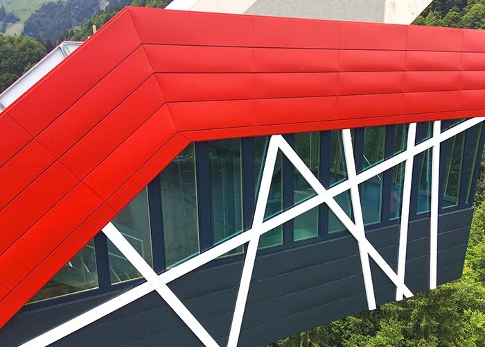 Un elemento centrale del suo progetto è stato l'"Adlerhorst" a Schanzenkopf. Il "Penthouse", a 72 metri di altezza, che offre una fantastica vista sul Freibergsee e sul Nebelhorn. I "saltatori" di ADLER hanno davvero potuto spiccare il volo da questo accogliente nido. Hans-Martin Renn ha voluto riprendere questa idea di "nido d'acquila" e inserirla nel progetto, che nella sua forma astratta ricorda per l'appunto proprio un nido di rapaci. Ha messo la costruzione del vetro e degli elementi di facciata di questo nido d'aquila nelle mani esperte dell'azienda Bietsch di Ofterschwang, con sede in Allgäu. L'azienda di famiglia si è specializzata in progetti complessi di grandi dimensioni - "Siamo specialisti per tutto ciò che è esigente e impegnativo", afferma il giovane capo Franz-Josef Bietsch, e questo progetto non è sicuramente da meno.